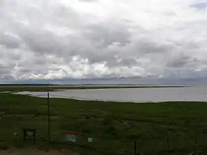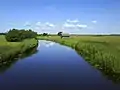 Kasari River is the biggest of several rivers that run into Matsalu Bay. The delta of the Kasari River is not in its natural condition due to dredging between 1930 and 1960; the alluvial meadow of the delta (40 km2 (15 sq mi)), most of which is actively managed, is one of the biggest open wet meadows in Europe.[6] Reeds and rushes surrounding the main channel expand westwards up to 100 m (328 ft) every year.[4] Annual inflow into the Matsalu Bay from the Kasari River exceeds the volume of the bay itself approximately eight times; average seasonal variation of the Kasari River exceeds 1.7 metres (6 ft).[6] The rivers carry large quantities of nutrient-rich sediments into the bay from an over 3,500 km2 (1,350 sq mi) drainage basin. The sediments are deposited in river estuaries, allowing reedbeds to expand.[5]
