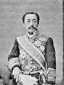 Count Matsudaira Norikata (松平 乗謨, December 18, 1839 – January 26, 1910) was the 8th and final daimyō of Okutono in Mikawa Province, and 1st (and final) daimyō of Tanoguchi Domain in Shinano Province. He served in the Tokugawa shogunate in the positions of Rōjū and Wakadoshiyori, and became a leader in the Meiji government following the Meiji Restoration as a politician. He was one of the founders of the Japanese Red Cross. He is also known as Ogyū Yuzuru (大給恒).