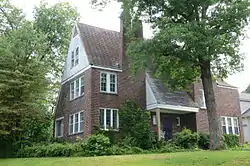The Matthews-Dillon House is a historic house at 701 Skyline Drive in North Little Rock, Arkansas. It is a 2+1⁄2-story brick building, with a steeply pitched gable roof in a saltbox profile. The roof is continued over a small front porch, with flush-set chimneys to its left and a gabled projection to its right. The house was built in 1928 by the Justin Matthews Company, to a design by company architect Frank Carmean. The house is locally unusual for its evocation of colonial New England architectural style, executed as a brick variant of medieval English architecture.[2]
