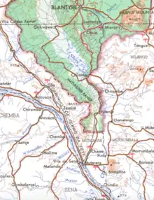 Malawi's Matandwe Forest Reserve covers part of northern range. The reserve was established in 1931, and covers and area of 31,053 ha.[2] The main plant community in the reserve is open-canopy miombo woodland dominated by Brachystegia species, particularly B. boehmii, along with Uapaca kirkiana.[3] Mwabvi Wildlife Reserve lies west of the range at its northern end, in the valley of the Mwabvi River, a northward-flowing tributary of the Shire.