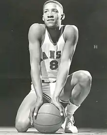 Earning a starting position as a junior in 1955-1956, King earned All-Big Seven honors for that season as KU’s scoring leader averaging 14.0 points per game. The 1955-56 season, which Kansas finished with a 14-9 record and 5th place in the Big Seven Conference, was Wilt Chamberlain’s freshman year in which Chamberlain was forced to redshirt due to NCAA rules in place at the time. As the only other black player on the Kansas team, King was a valuable friend and mentor to Chamberlain as they became fraternity brothers at Kappa Alpha Psi, Mu Chapter. [3][4]