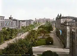 The western portion of Maximilianstraße is known for its galleries, designer shops, luxury boutiques, jewellery stores, and one of Munich's foremost five-star hotels, the Hotel Vier Jahreszeiten (Kempinski, built by Rudolf Gottgetreu, 1856–1858).[1]