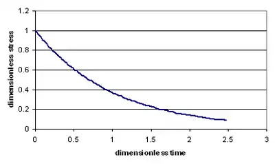 The picture shows dependence of dimensionless stress upon dimensionless time :