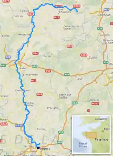 The Mayenne (French pronunciation: [majɛn] (listen)) is a 202.3 km (125.7 mi) long river in western France principally located in the French region of Pays de la Loire.[1] Together with the river Sarthe and its tributary the Loir it forms the Maine, which is a tributary to the Loire.