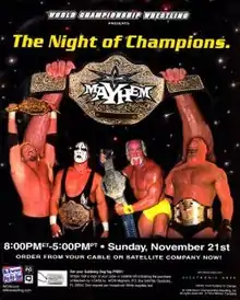 Mayhem (1999) was the inaugural Mayhem professional wrestling pay-per-view (PPV) event produced by World Championship Wrestling (WCW), presented by Electronic Arts (in which the event was named after the EA-published video game of the same name) The event took place on November 21, 1999 from the Air Canada Centre in Toronto, Ontario, Canada.