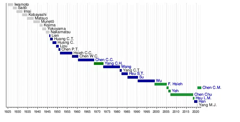 | Oct 1945–present | Mayor of Kaohsiung | 高雄市市長 | Gāoxióng Shì Shìzhǎng |