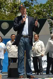 Many prominent Democrats, such as Dianne Feinstein, criticized Newsom for issuing the directive for same sex marriage licenses, claiming it had contributed to John Kerry's defeat in the 2004 presidential election.[3][4] Former San Francisco mayor Willie Brown has stated that Barack Obama declined to have his picture taken with Newsom at a fundraiser in 2004. Obama's deputy campaign director, Steve Hildebrand, has denied this, calling it "a ridiculous story".[9] The 2004 same sex marriages increased Newsom's popularity in San Francisco to the level where he faced no serious opposition to his reelection in 2007.[4][9]