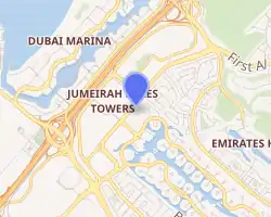 The Mazaya Business Avenue project comprises three identical Commercial Towers on 5, 7 and 9 of Al Worood 3 Street. The Towers sit on the fringe of Jumeirah Islands and Jumeirah Lake Towers in Dubai, United Arab Emirates. The three identical towers are named as Mazaya Business Avenue AA1 (5, Al Worood 3 Street), Mazaya Business Avenue BB1 (7, Al Worood 3 Street) and Mazaya Business Avenue BB2 (9, Al Worood 3 Street). All of the towers stand at a height of 180 meters (591 ft), have 45 floors each and house predominantly commercial enterprises.[1][2] Since the Building's completion in 2012, it has attracted Forbes Most Promising UAE Startup Companies[3] and DMCC Most Innovative Startup[4] Companies as well as the leading DMCC Freezone companies. The Tower' occupants also include Multi-National Corporations, Global Conglomerates and Independent Enterprises whom operate in a multitude of industries such as GEEKS Computer Repair and IT Support,[5] IT Services, IT Communications,[6] Architecture, Engineering, Marketing, Advertising, Public Relations, FMCG, Training, Recruitment, International Freight Shipping, Contemporary Dance. The closest Dubai Metro Station to the Towers is 800 metres away at Jumeirah Lakes Towers (Dubai Metro). There are many local amenities less than 450 metres away in Jumeirah Lake Towers including restaurants, cafes, fast food takeaways, supermarkets,[7] a typing centre[8] and an Irish Bar.[9][10][11]