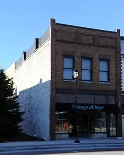 The McClanahan Block is a historic building located in Iowa Falls, Iowa, United States. The city experienced a devastating fire in 1874, and most of the buildings on this block were built after the fire giving them a commonality of design. This two-story commercial building, completed in 1913, stands out given its polychrome brick and the simplicity of its design.[2] Its decorative elements are found in the patterns created on its surface utilizing the bricks. At the time this building was constructed, Washington Avenue was paved and cement sidewalks replaced their wooden predecessors.