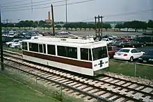 Built as a single-ended PCC (Presidents' Conference Committee) streetcar by St. Louis Car Company in 1945 for (Washington) DC Transit. Operated by DC Transit as car 1506 until abandonment of that system in February 1962. Bought by Fort Worth's Marvin and Obediah Leonard for their rail shuttle line from their vast parking lot to their downtown department store's basement station via a 1,400-foot subway. It was rebuilt as a double-ended car and given a more "modernized" appearance in Fort Worth — stainless steel siding and blue roof trim. This modification did not completely conceal its standard PCC design heritage. Old 1506 was renumbered as M&O #2. No. 2 served as a Tandy Center Subway car until the line was abandoned on August 30, 2002. Despite modifications to soften the car's lines, it retained a distinctive shape reminiscent of a Winnebago — hence the nickname.[23]
