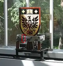 The fireball is the official symbol of McMaster Engineering. It historically comes from the coat of arms of Hamilton College. McMaster's Faculty of Engineering emerged from Hamilton College in 1958 and hence adopted a red fireball as its own emblem in 1960.[9] The fireball symbol is used widely by both the faculty and students to represent everything from culture, to excellence in research and innovation, as well as the energy that cuts across science and engineering.[10] In 2016, the Engineering Student Society of Conestoga College in Kitchener, Ontario applied to make the fireball a registered trademark.[11]
