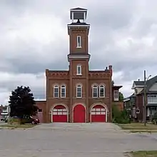 The Northern Railway of Canada's North Grey Railway arrived in Meaford on December 31, 1872 in its westward push from Collingwood via Thornbury.[5] It was originally planned to extend further west to Owen Sound, but this ambition was never realized due to a number of factors, including rough terrain, financial limitations, and competition from the Toronto, Grey and Bruce Railway, which reached Owen Sound in 1873.[6] The railway was later part of the Grand Trunk Railway and Canadian National Railways (CNR) systems. Thereafter, it became known as the CN Meaford Subdivision. Regular passenger service ended in 1960 and the line was abandoned in 1985.[6]
