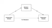 In statistics, a mediation model seeks to identify and explain the mechanism or process that underlies an observed relationship between an independent variable and a dependent variable via the inclusion of a third hypothetical variable, known as a mediator variable (also a mediating variable, intermediary variable, or intervening variable).[1] Rather than a direct causal relationship between the independent variable and the dependent variable, a mediation model proposes that the independent variable influences the mediator variable, which in turn influences the dependent variable. Thus, the mediator variable serves to clarify the nature of the relationship between the independent and dependent variables.[2] [3]