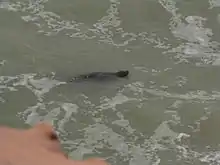 On 24 June 2011, the Blue World Institute of Croatia[33] filmed an adult female underwater in the northern Adriatic, off the island of Cres and a specimen of unverified sex on 29 June 2012.[34] On 2 May 2013 a specimen was seen on the southernmost point of Istrian peninsula near the town of Pula.[35] On 9 September 2013, in Pula a male specimen swam to a busy beach and entertained numerous tourists for five minutes before swimming back to the open sea.[36] In summer 2014 sightings in Pula have occurred almost daily and monk seal stayed multiple times on crowded city beaches, sleeping calm for hours just few meters away from humans.[37][38] To prevent accidents and preserve monk seal, local city council acquired special educational boards and installed on city beaches.[39] Despite clear instructions, an incident occurred with a tourist harassing a seal. The whole event was filmed.[40] Less than a month later on 25 August 2014 this female monk seal was found dead in the Mrtvi Puć bay near Šišan, Croatia. Experts said it was natural death caused by her old age.[41]