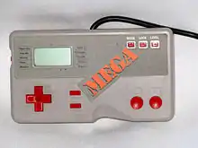 The Bandai Mega controller is a programmable unit released in 1987[1] and officially licensed by Nintendo for play on the Nintendo Entertainment System. It includes a built in LCD screen that displays the active functions, and a built in game.
