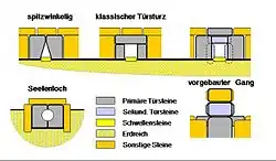 A megalithic entrance is an architectonic feature that enables access to a megalithic tomb or structure. The design of the entrance has to seal the access to the cultic structure in such a way that it is possible to gain access to the interior again, even after a long time, in order to perform rituals. To that end, the practitioners of Nordic megalith architecture, the Wartberg culture and Horgen culture, used several variants, that are also found in other megalithic regions in identical or slightly modified form.