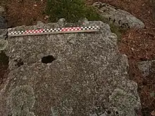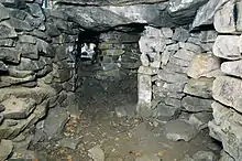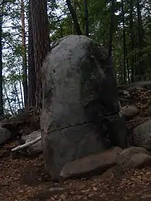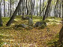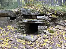At present, more than 200 dolmens have been discovered in the Sverdlovsk Oblast.[1][2] Specificity of the dolmens in the Middle Urals is their relatively small size (width and length no more than 1.5 - 2.5 m) and original constructions. Based on differences in their construction, it is possible to distinguish two main types of dolmen: