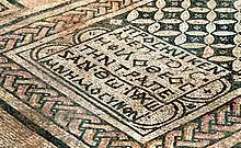 inscription stating that "The God-loving Akeptous has offered the table to God Jesus Christ as a memorial."[3][4][5] The mosaic is very well preserved and features geometrical figures and images of fish, an early Christian symbol.[6]