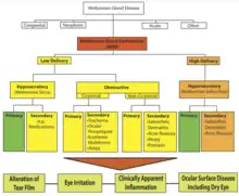 The dysfunction is more often seen in women, and is regarded as the main cause of dry eye syndrome.[6][7] Factors that contribute to the dysfunction can include things such as a person's age and/or hormones,[8] or severe infestation of Demodex brevis mites.
