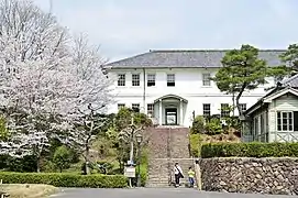 Meiji-mura (博物館明治村, Hakubutsukan Meiji-mura, "Meiji Village Museum") is an open-air architectural museum/theme park in Inuyama, near Nagoya in Aichi prefecture, Japan. It was opened on March 18, 1965. The museum preserves historic buildings from Japan's Meiji (1867–1912), Taisho (1912–1926), and early Shōwa (1926–1989) periods. Over 60 historical buildings have been moved and reconstructed onto 1 square kilometre (250 acres) of rolling hills alongside Lake Iruka. The most noteworthy building there is the reconstructed main entrance and lobby of Frank Lloyd Wright's landmark Imperial Hotel, which originally stood in Tokyo from 1923 to 1967, when the main structure was demolished to make way for a new, larger version of the hotel.[1]