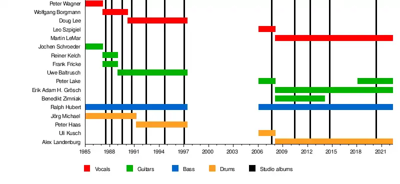 | Past members | Wolfgang Borgmann Jochen Schroeder Frank Fricke Reiner Kelch Georg Syrmbos Peter "Peavy" Wagner Jörg Michael Uli Kusch Peter Haas Doug Lee Uwe Baltrusch Leo Szpigiel Benedikt Zimniak |