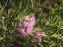 Melaleuca ctenoides is a shrub in the myrtle family, Myrtaceae and is endemic to the south-west of Western Australia. It was first described in 1990 in a review of the genus Melaleuca when the species M. laxiflora at that time was found to comprise ten species. Two of those species were new - M. camptoclada and M. ctenoides.[2] It similar to Melaleuca laxiflora but distinguished from it by its comb-like leaves and attractive mauve or violet flowers in spring.