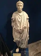 A Temple of Proserpina stood on the hill of Mtarfa, outside the walls of Melite. Only a fragment of a marble column and parts of a Punic cornice remain from this temple, but its existence is known from the Chrestion inscription, an inscription discovered in 1613 recording that the temple was renovated during the reign of Augustus.[14] A statue of Saint Nicholas now stands on the site of the temple.[15]