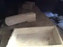 Sections of a Roman road, cisterns, canals and other archaeological remains were discovered beneath Palazzo Castelletti in Rabat.[29] Some inscriptions, column capitals and other architectural remains from ancient Melite have also been found, and these are now preserved at the Domus Romana museum and the Cathedral Museum in Mdina,[23] or in private collections.[30] Parts of the podium of the Temple of Apollo were discovered in 2002.[13] The remains of other ancient buildings, as well as pottery, coins or other artifacts from the Bronze Age or Punic-Roman period, are still occasionally discovered in excavations or during construction projects in Mdina or Rabat.[5][15]