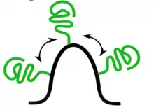 The protein crowding mechanism hypothesizes that proteins can bend membrane without directly perturbing membrane structures like the above mechanisms.[10][11] When a high enough local concentration of protein is present on membrane surface, repulsion between protein molecules on the membrane surface can induce membrane curvature.[12] Although contribution of this mechanism remains unclear, multiple experimental and computation evidences have shown its potential in bending membrane. A recent study even shows that protein crowding can cause membrane bending and leads to membrane fission.[13][14] These studies suggest that high local protein concentration can overcome the energy barrier to bend lipid membrane, and thus can contribute to membrane bending.
