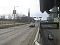 ![]() Memorial Drive outlined in red runs by the Arch Grounds on both sides of I-44 | |||