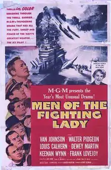 Men of the Fighting Lady (also known as Panther Squadron) is a 1954 Korean War drama film starring Van Johnson, Walter Pidgeon, Keenan Wynn, and directed by Andrew Marton. The screenplay was written by U.S. Navy Commander Harry A. Burns, who had written a Saturday Evening Post article, "The Case of the Blinded Pilot", an account of a U.S. Navy pilot in the Korean War, who saves a blinded Navy pilot by talking him down to a successful landing. Men of the Fighting Lady was also inspired by another Saturday Evening Post article, "The Forgotten Heroes of Korea" by James A. Michener. The original music score was composed by Miklós Rózsa. It is not to be confused with the 1944 documentary The Fighting Lady, which was mainly filmed aboard the USS Yorktown (CV-10).