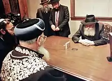 On the first anniversary of his father-in-law's passing, 10 Shevat 1951, in a ceremony attended by several hundred rabbis and Jewish leaders from all parts of the United States and Canada, Schneerson delivered a Hasidic discourse (Ma'amar), the equivalent to a President-elect taking the oath of office, and formally became the Rebbe.[77] On the night of his acceptance, members of the Israeli Cabinet and Israel's Chief Rabbi Yitzhak Herzog sent him congratulatory messages.[78]