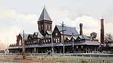 A new Union station was opened on February 23, 1888 to replace the original depot which had burned down in 1885. The new building contained a hotel, restaurants, and separate waiting areas for passengers and railroad staff. Because of falling revenue and ridership, much of the station was torn down in 1942. The current Mendota station is the only remaining portion of the original structure.[8]