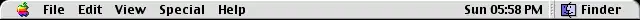 In the Macintosh operating systems, the menu bar is a horizontal "bar" anchored to the top of the screen. In macOS, the left side contains the Apple menu, the Application menu (its name will match the name of the current application) and the currently focused application's menus (e.g. File, Edit, View, Window, Help). On the right side, it contains menu extras (for example the system clock, volume control, and the Fast user switching menu (if enabled) and the Spotlight icon. All of these menu extras can be moved horizontally by command-clicking and dragging left or right. If an icon is dragged and dropped vertically it will disappear with a puff of smoke, much like the icons in the dock. In the Classic Mac OS (versions 7 through 9), the right side contains the application menu, allowing the user to switch between open applications. In Mac OS 8.5 and later, the menu can be dragged downwards, which would cause it to be represented on screen as a floating palette.