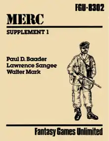 FGU published the modern-day mercenary combat role-playing game Merc in 1981. Two years later, FGU published Merc Supplement 1: In Country, a 28-page softcover supplement written by Paul D. Baader, Lawrence Sangee, and Walter Mark.[1]