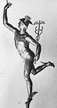 It was decided early on that Mercure would have no plot. The libretto has been variously attributed to Massine or Picasso, but the formal concept was Beaumont's. In a letter to Picasso dated February 21, 1924, Beaumont stated he wanted the ballet to be a series of tableaux vivants on a mythological theme, in a lighthearted manner suitable for a music hall. Beyond those stipulations he said, "I don't want to drag literature into it, nor do I want the composer or the choreographer to do so...do whatever you want."[7] Satie's input appears to have been decisive in selecting the ancient Roman god Mercury as the subject – and not entirely for artistic reasons.
