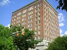As the city grew, the hotels reflected ambitions of the strong economy, as evidenced by the 11-story skyscraper Lamar Hotel built in 1927.[32] Listed on the National Register of Historic Places in 1979, the Lamar Hotel was adapted for use as a county annex building.[35] In 1988 it was listed as a Mississippi Landmark.[36] The E.F. Young Hotel was built in 1931.[37] A staple in the African-American business district that developed west of the city's core, the hotel was one of the only places in the city during the years of segregation where a traveling African American could find a room.[20]