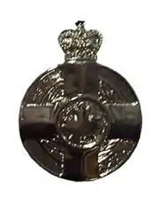 The Meritorious Service Medal, for both divisions, is in the form of a circular, silver disc with, on the obverse, a raised Greek cross, the ends splayed and rounded, a laurel wreath visible between them, and a St. Edward's Crown, as a symbol of the Canadian monarch's role as the fount of honour,[3] capping the top arm beyond the circumference of the medal. At the cross' centre is a roundel bearing a maple leaf, and on the reverse is two concentric circles, the inner one containing an etched Royal Cypher of the reigning monarch and Commander-in-Chief of the Canadian Forces, and the outer one engraved with the words MERITORIOUS SERVICE MÉRITOIRE.[1]