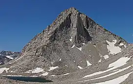The first ascent of the summit was made July 14, 1933, by Sierra Club members Lewis Clark, Julie Mortimer, and Ted Waller.[5] They called it "Bastille Peak" in honor of the July 14th French holiday, Bastille Day, unaware that it had previously been named.[6] Class 3 scrambles can be made via the east, south, and southwest aspects.[7] The North Buttress is considered one of the classic climbing routes in the Sierra Nevada.[8]