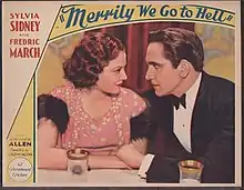 Merrily We Go to Hell is a 1932 pre-Code film directed by Dorothy Arzner, and starring Fredric March and Sylvia Sidney. Its title is an example of the sensationalistic titles that were common in the pre-Code era.[2] Many newspapers refused to publicize the film because of its racy title.[3] The title is a line March's character says while making a toast.[4]