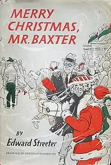 Merry Christmas, Mr. Baxter was a novel written and published in 1956 by American author Edward Streeter. It was preceded in his list of novels by Mr. Hobbs' Vacation in 1954, and followed by Mr. Robbins Rides Again in 1958. It is a humorous view of a successful businessman's methodical approach to "this Christmas business", contrasted with his wife's chiding scorn over his "typical businessman's approach to something beautiful and intangible". The book was published in the fall of 1956 by Harper & Brothers, New York City, and is 181 pages in length in the original edition. The illustrations were by Dorthea Warren Fox. The book is divided into four sections: "October", "November", "December", and "Christmas Eve", which are further divided by numbered chapters. A Reader's Digest Condensed Books edition was also published in the Fall of 1956, with illustrations by Charles Hawes.
