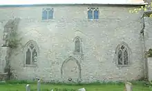 The Knights Templar established a watermill in the parish.[3] The earliest known record of it is from 1156 to 66.[3] West of St Swithun's is a rubblestone tithe barn that may have been built in the 15th century[13] or early 16th century.[14] It has a queen post roof and is thatched.[13] In the late 20th century it was converted into four homes.[14]