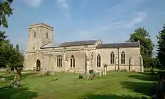 The Church of England parish church of Saint Swithun is Decorated Gothic, built early in the 14th century.[8] It has a south aisle, linked with the nave by an arcade of four bays.[3] Late in the 15th century the Perpendicular Gothic clerestory was added to the nave.[3] The chancel windows and one window in the south aisle are also Perpendicular Gothic.[8] The font is much older than the church, dating from late in the 12th century.[3]