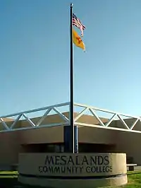 Mesalands Community College, is a public community college in Tucumcari, New Mexico. It is also the home of the North American Wind Research and Training Center and The Mesalands Stampede Intercollegiate Rodeo Team.[2]