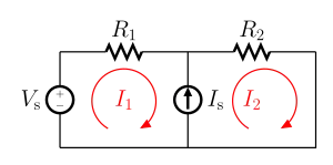 Mesh analysis (or the mesh current method) is a method that is used to solve planar circuits for the currents (and indirectly the voltages) at any place in the electrical circuit. Planar circuits are circuits that can be drawn on a plane surface with no wires crossing each other. A more general technique, called loop analysis (with the corresponding network variables called loop currents) can be applied to any circuit, planar or not. Mesh analysis and loop analysis both make use of Kirchhoff’s voltage law to arrive at a set of equations guaranteed to be solvable if the circuit has a solution.[1] Mesh analysis is usually easier to use when the circuit is planar, compared to loop analysis.[2]