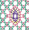 Torchon lace: two pins (red dots) connect two pairs of the ground with the motif