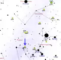 Fifty-four variable stars have been found in M93, including one slowly pulsating B-type star, one rotating ellipsoidal variable, seven Delta Scuti variables, six Gamma Doradus variables, and one hybrid δ[lower-alpha 2] Sct/γ Dor[lower-alpha 3] pulsator.[11] Four spectroscopic binary systems within include a yellow straggler component.[12]