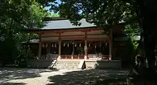 The main deity is Hieda no Are, who was involved in the compilation of the Kojiki, and Ame-no-Uzume-no-Mikoto and Sarutahiko Ōkami. Hieda no Are is the god of scholarship and storytelling.