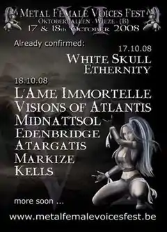 Metal Female Voices Fest was a heavy metal music festival dedicated to female vocalists, held annually in the Oktoberhallen in Wieze, Belgium from 2003 to 2016. It was organized by the Metal Organisation, which later changed into "2 Wild 4 agency". The festival enables smaller and unknown bands within the female fronted genre to perform on a big stage beside bigger and more famous bands.