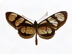 | Upperside of Methona themisto. Mounted specimen | |